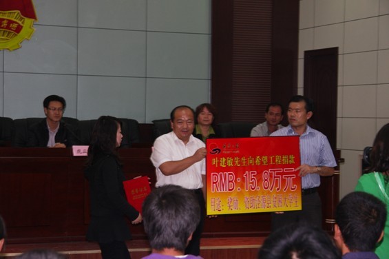 动。在这次助学金发放仪式上,叶建敏董事长亲手将